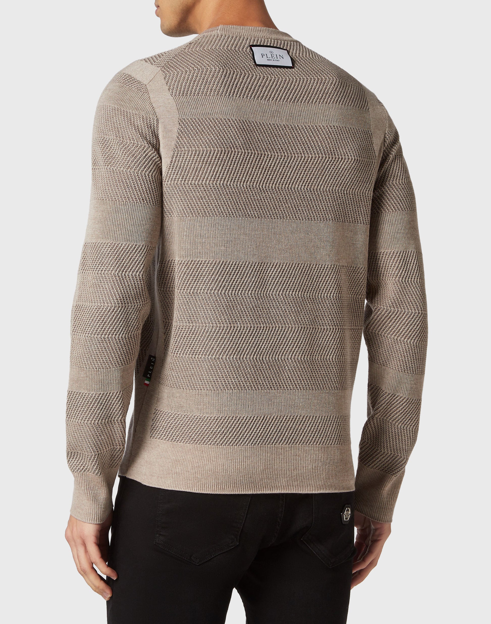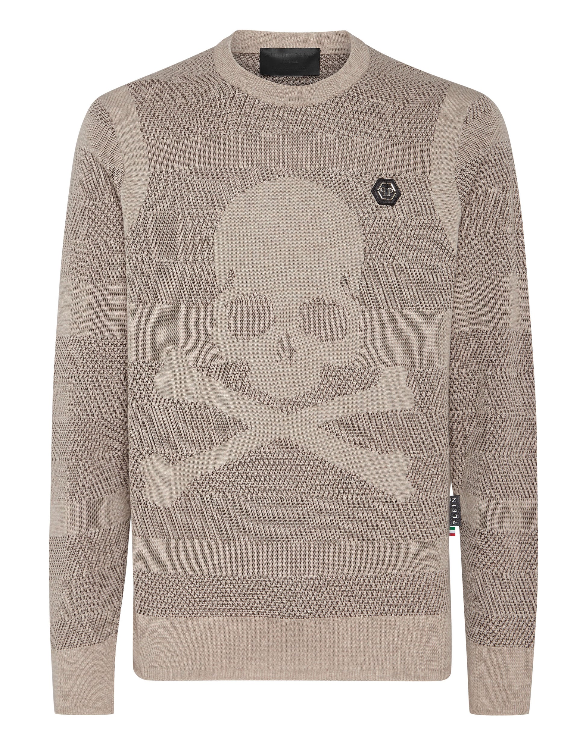 Wool/Silk Pullover Round Neck LS Skull&Bones brown / beige