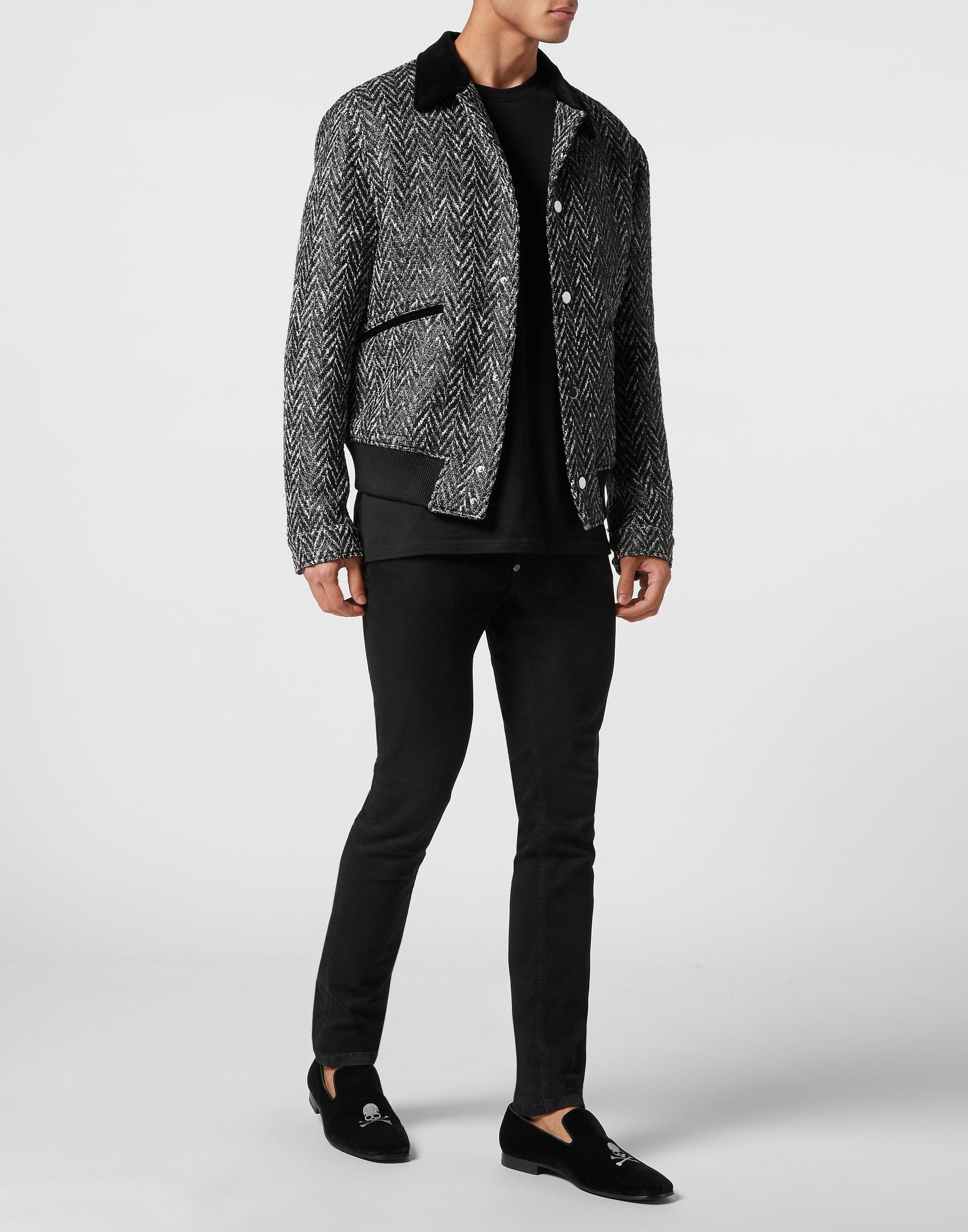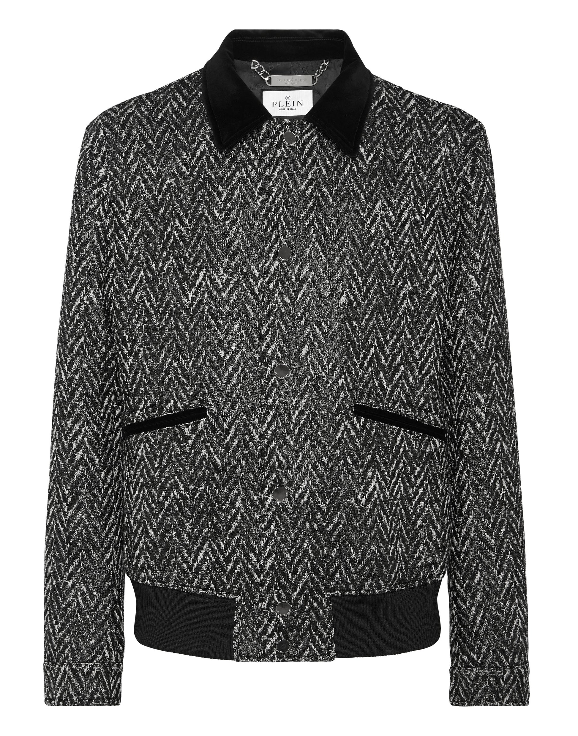 Chevron Collared Bomber Gothic Plein black