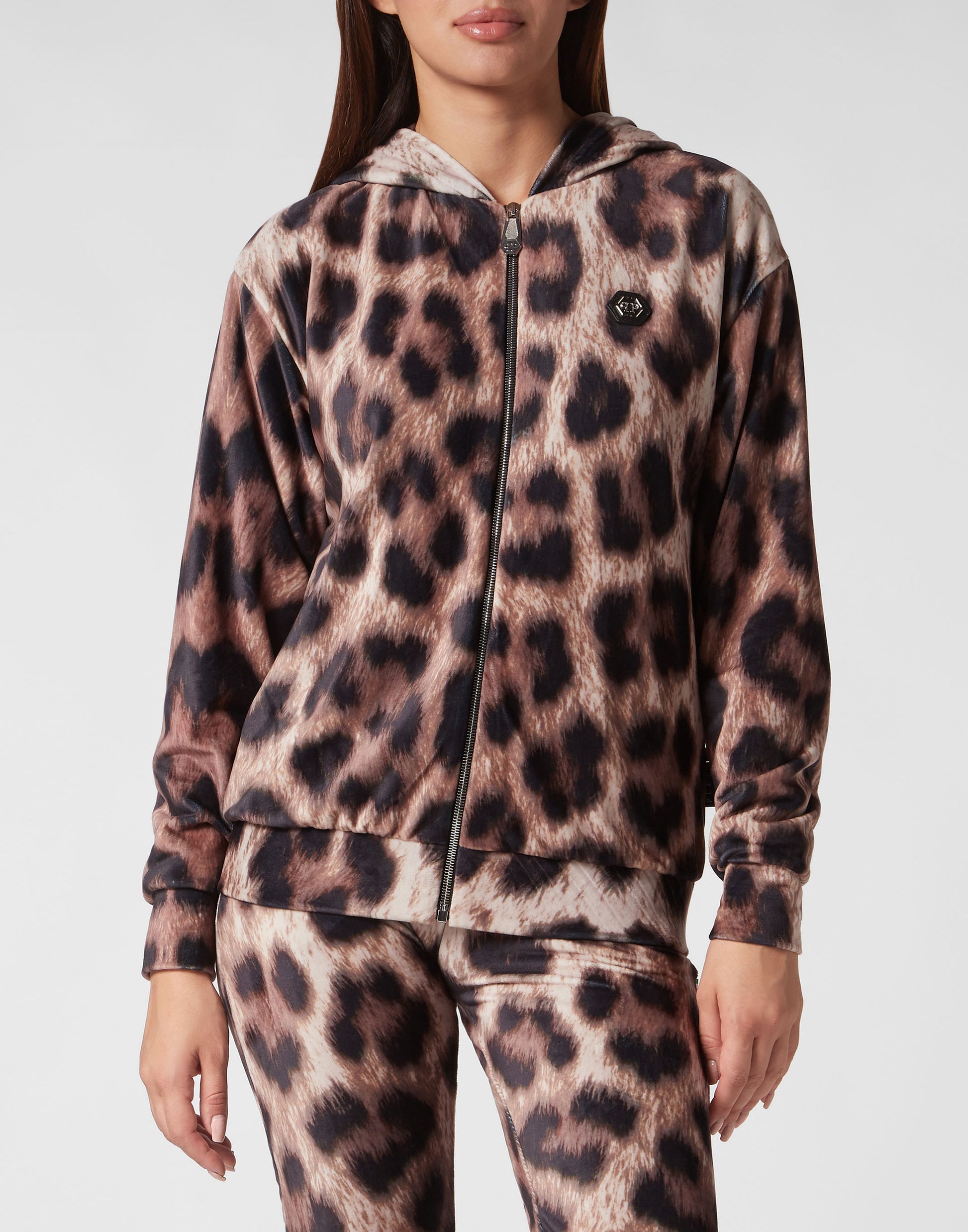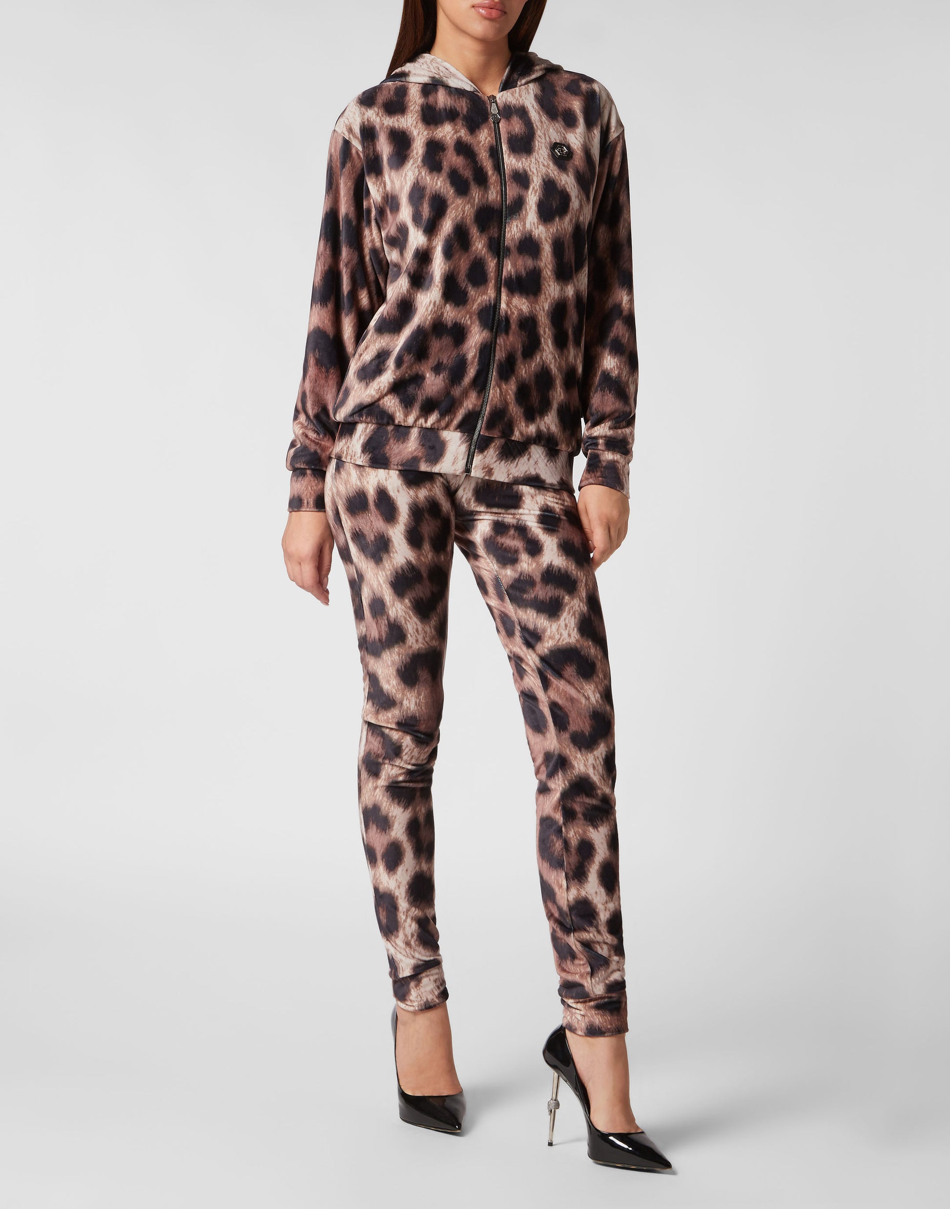 Chenille Tracksuit: Hoodie Sweatjacket/Trousers Leopard