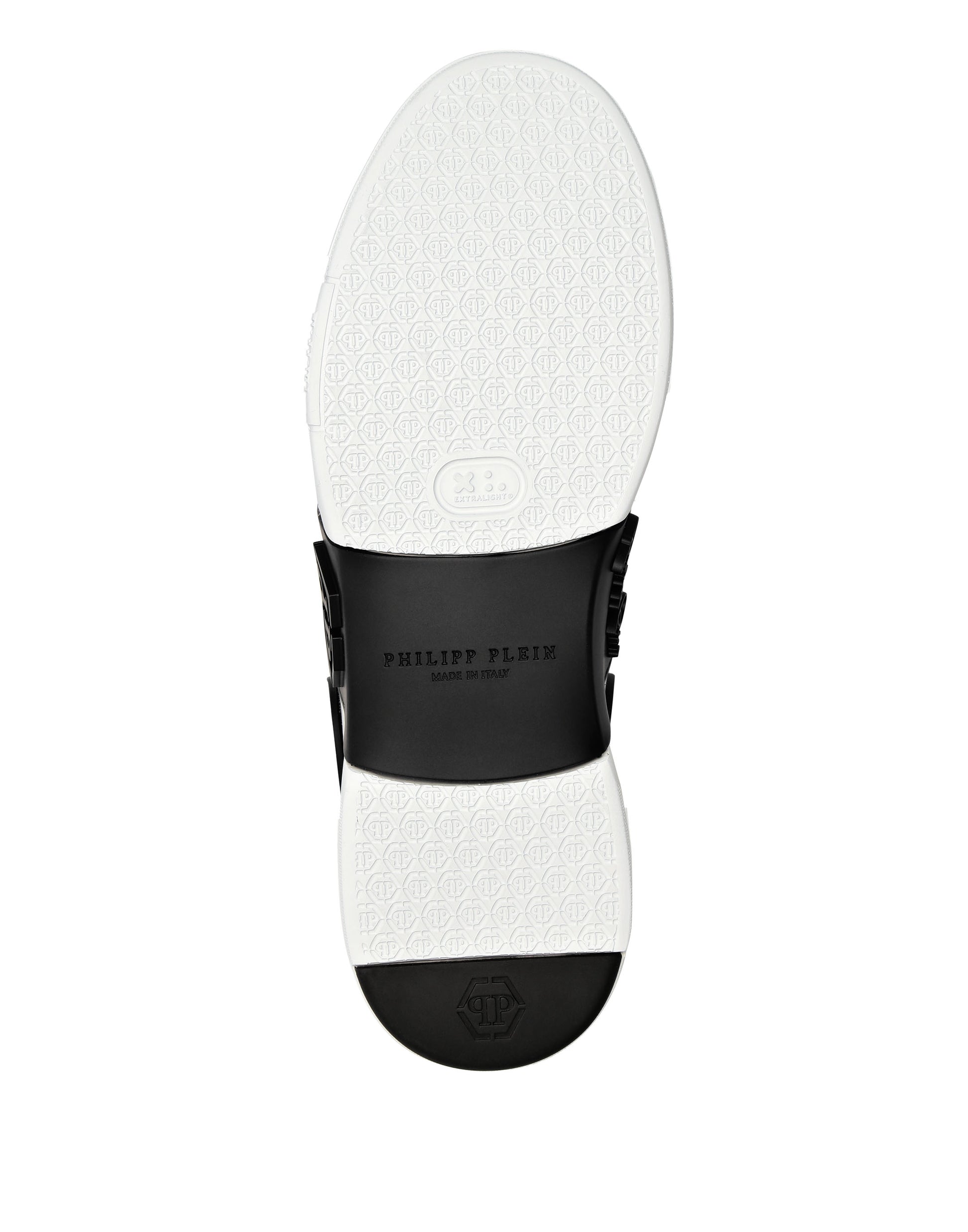 ● 橡膠帶上飾有金屬 PP 六角標誌,從鞋底延伸至鞋側