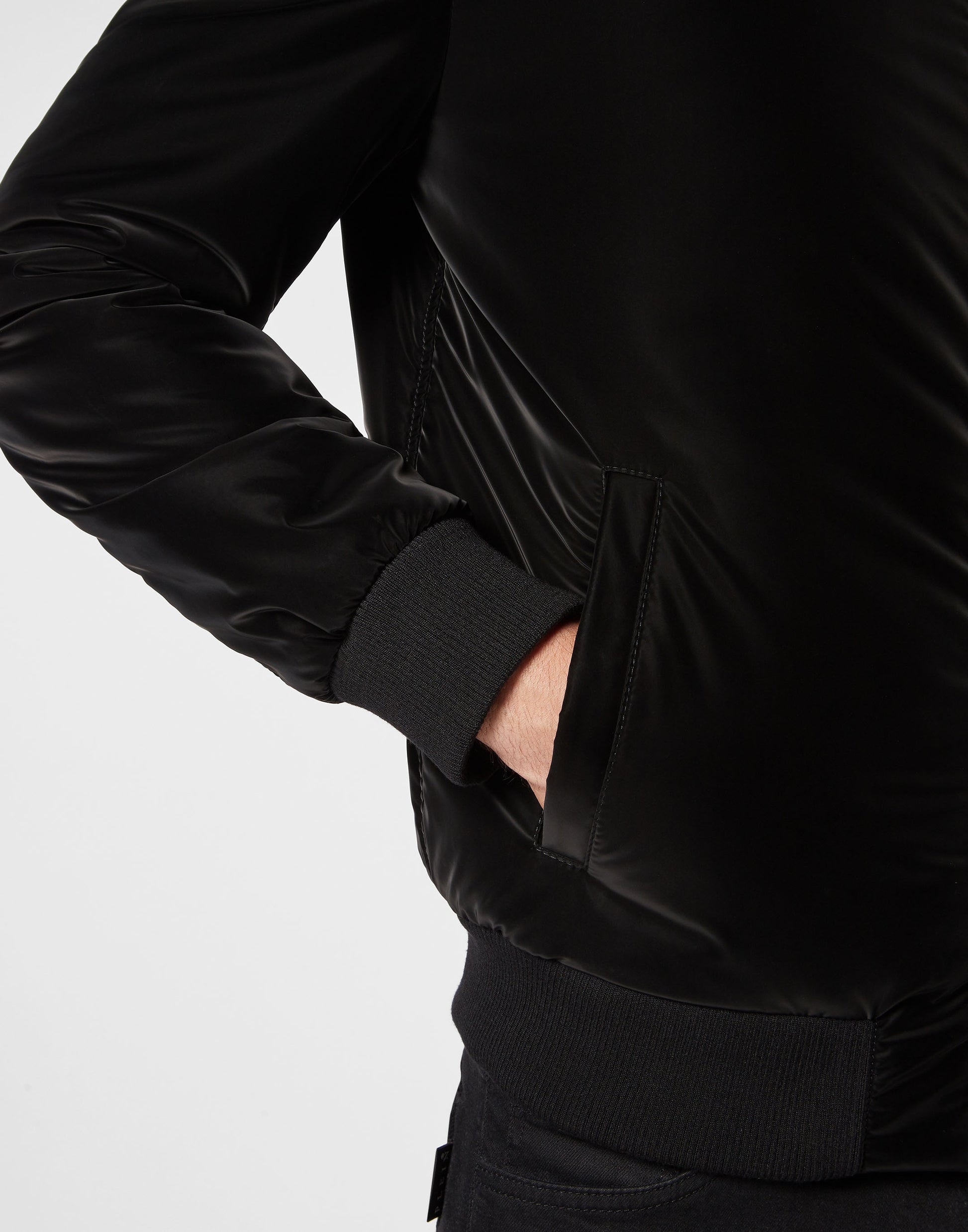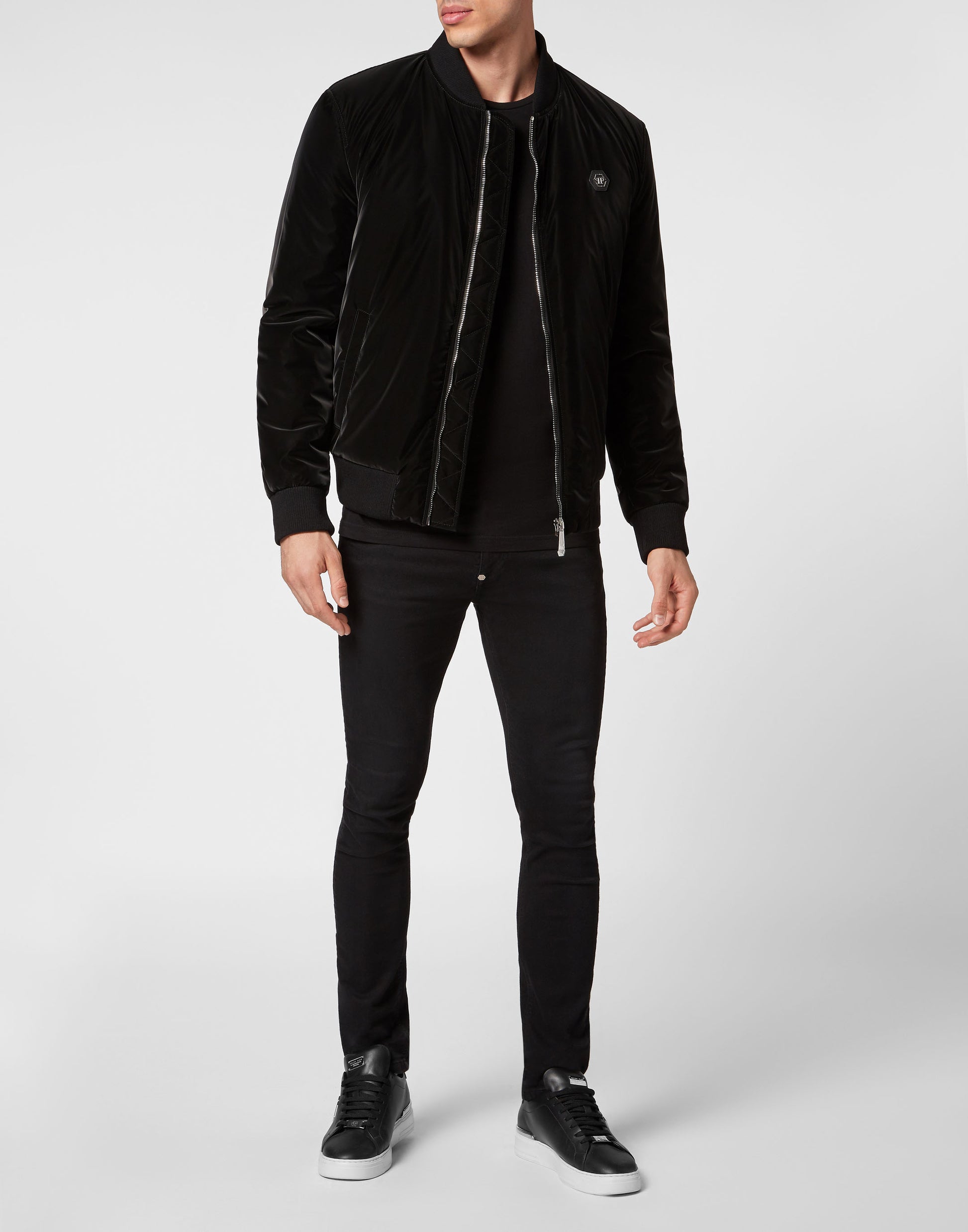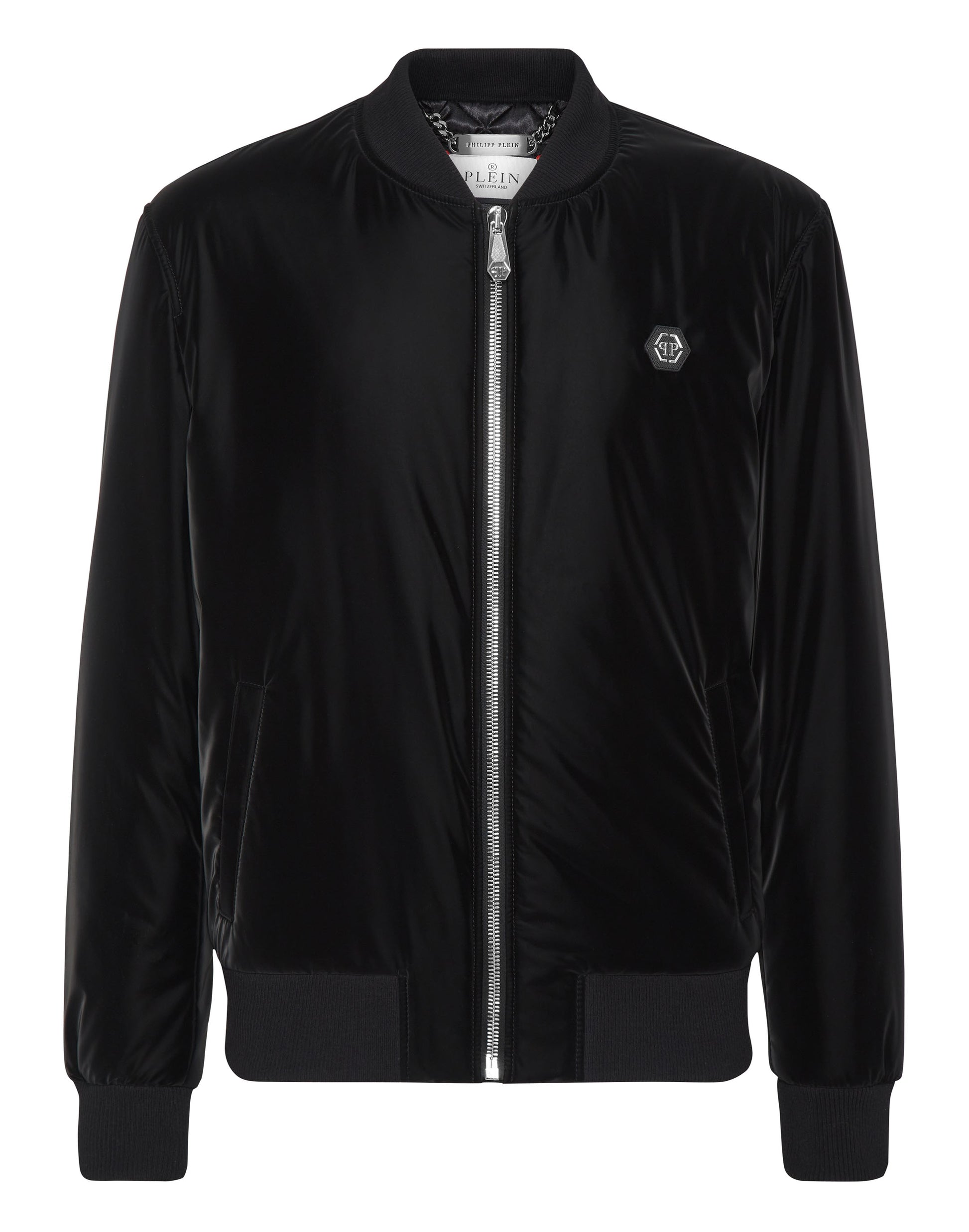 探索 Plein 的獨特風格,這款高光澤飛行員外套是夜間出行的完美之選。細節設計展現不凡魅力: