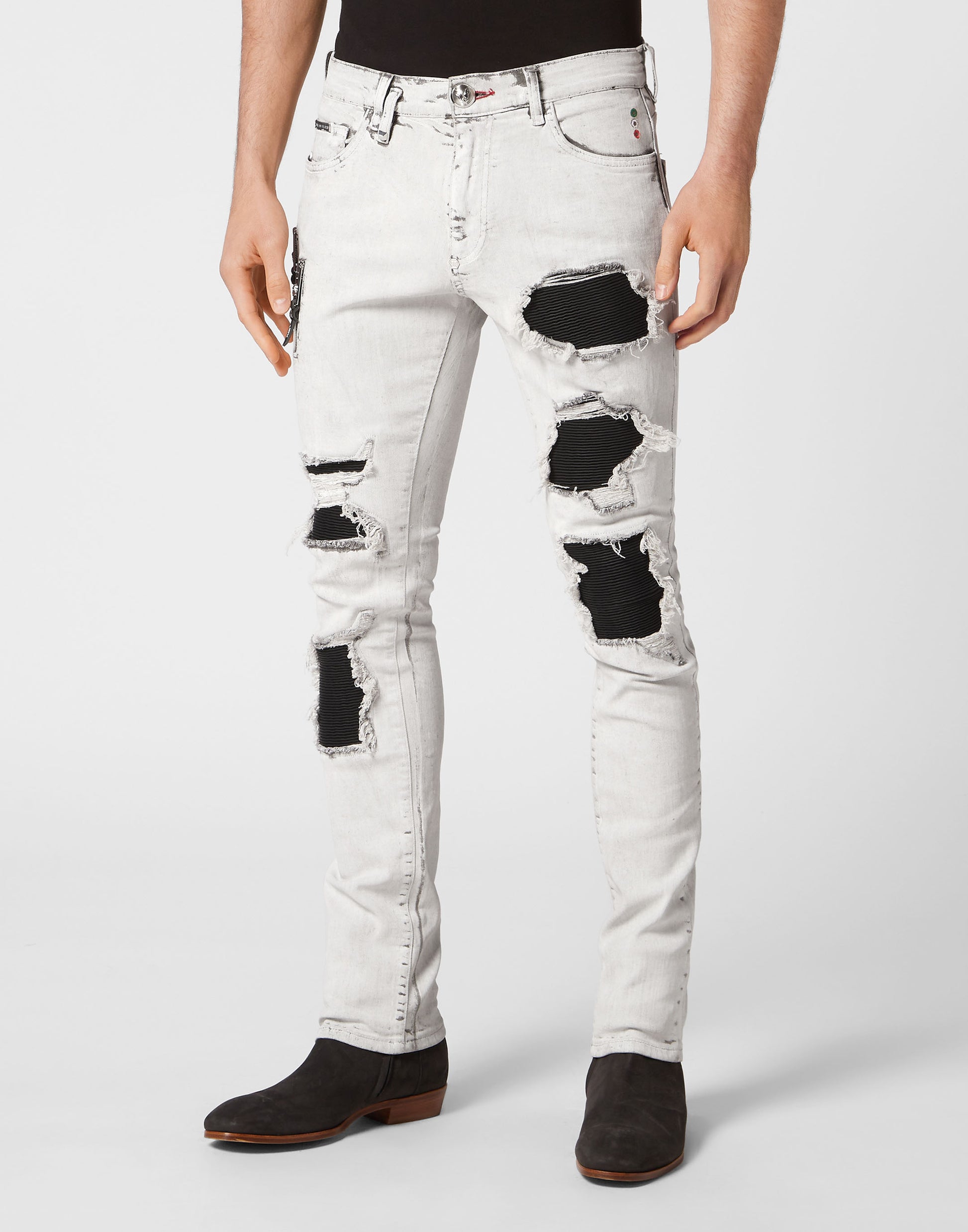 打破常規,選擇一件真正獨特的單品,例如這款大理石紋彈性牛仔五袋褲。