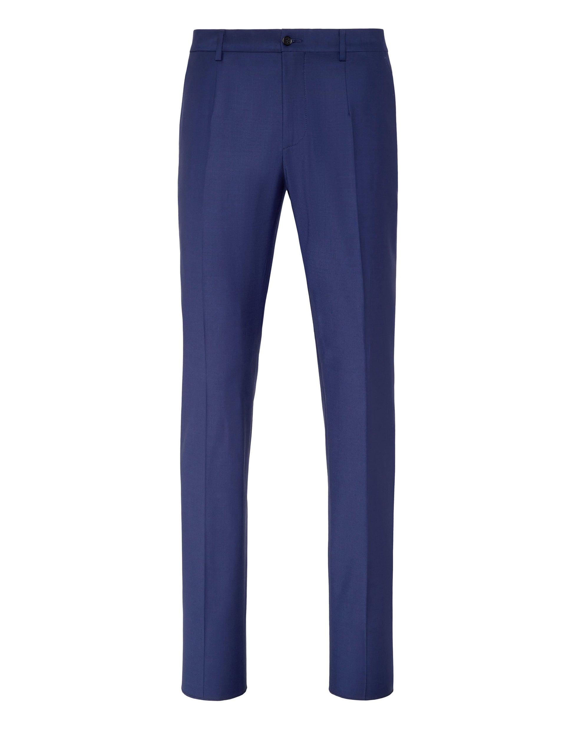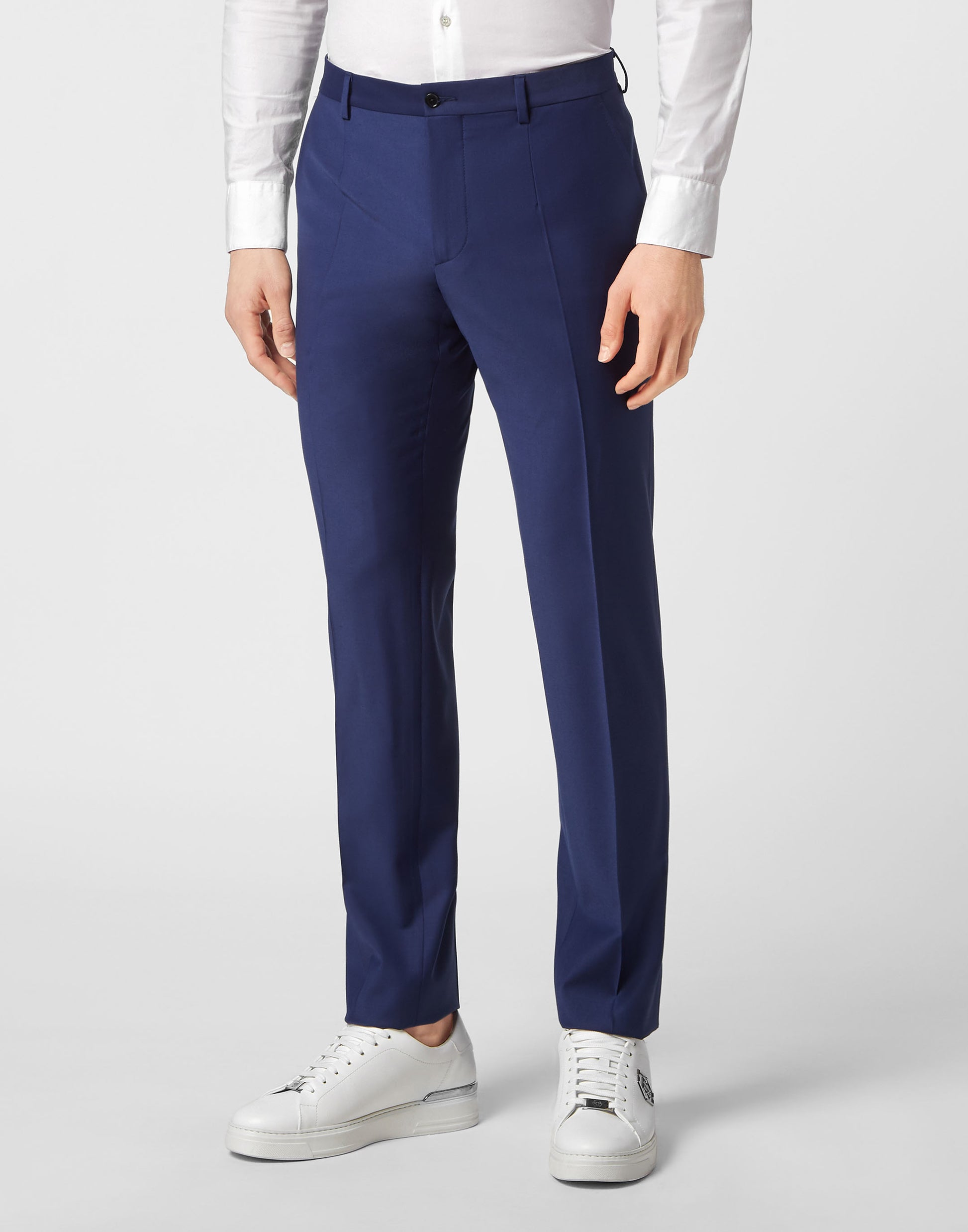 為你的造型增添一抹 Plein 高級訂製風格。看看這款輕盈羊毛平前褲,探索其特色。