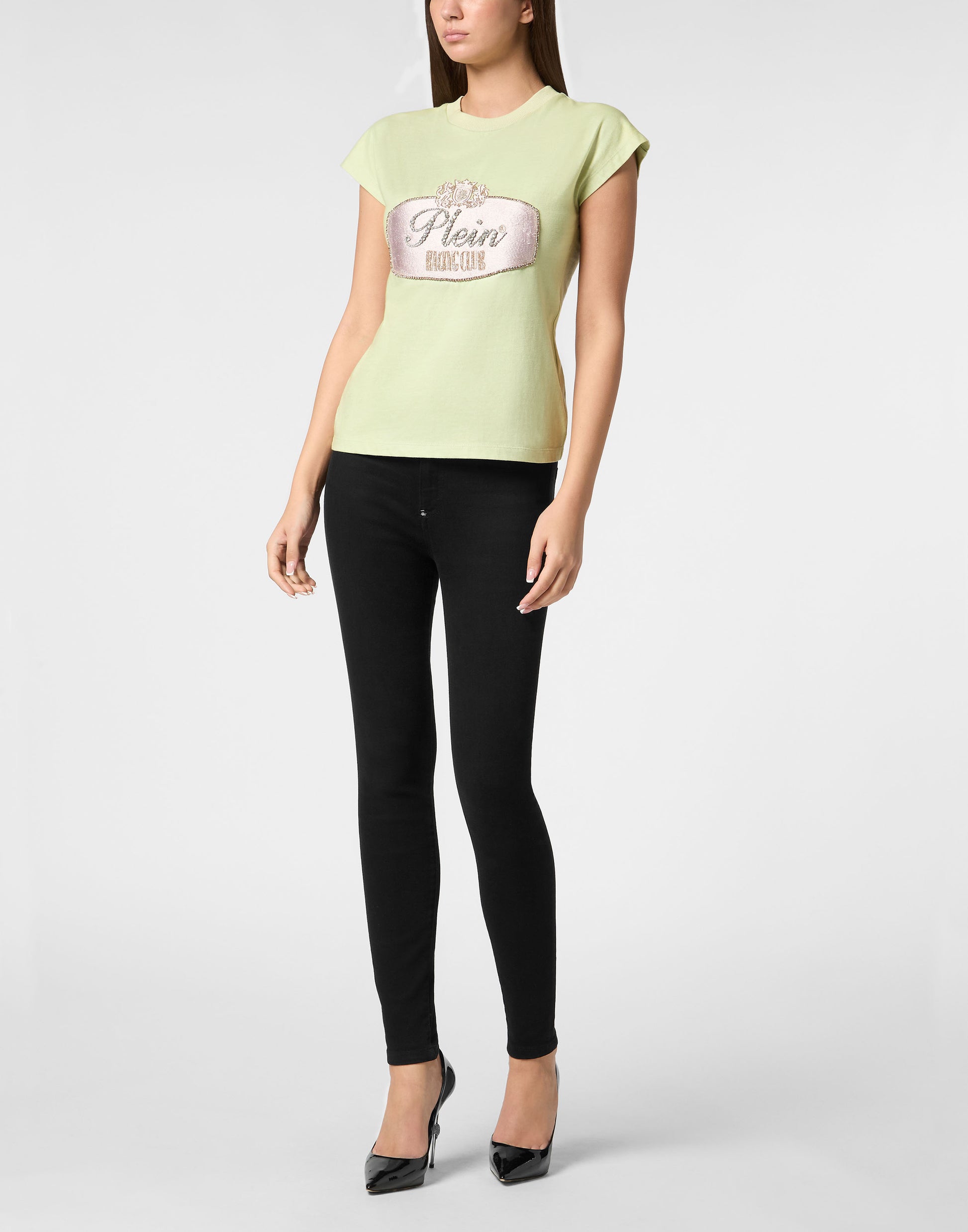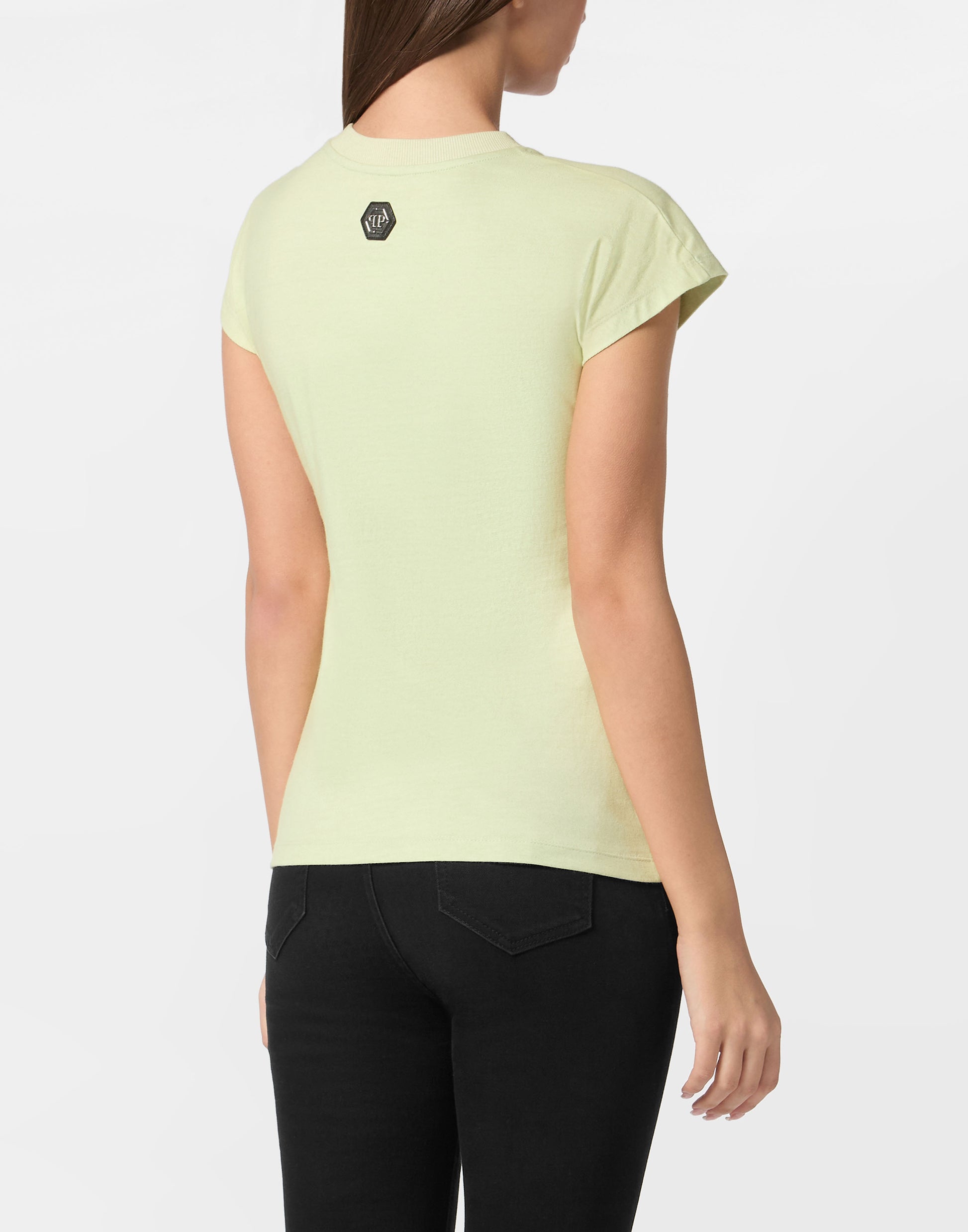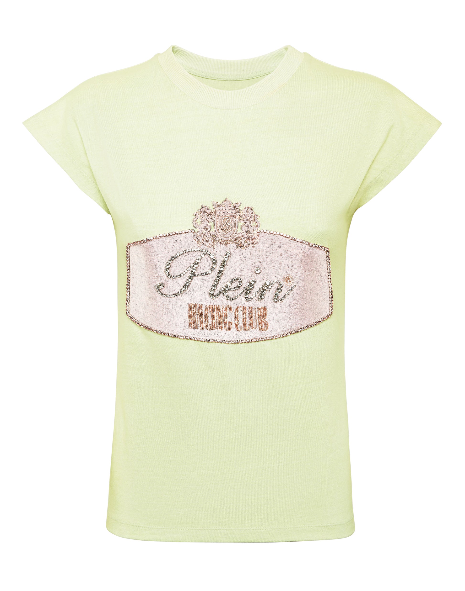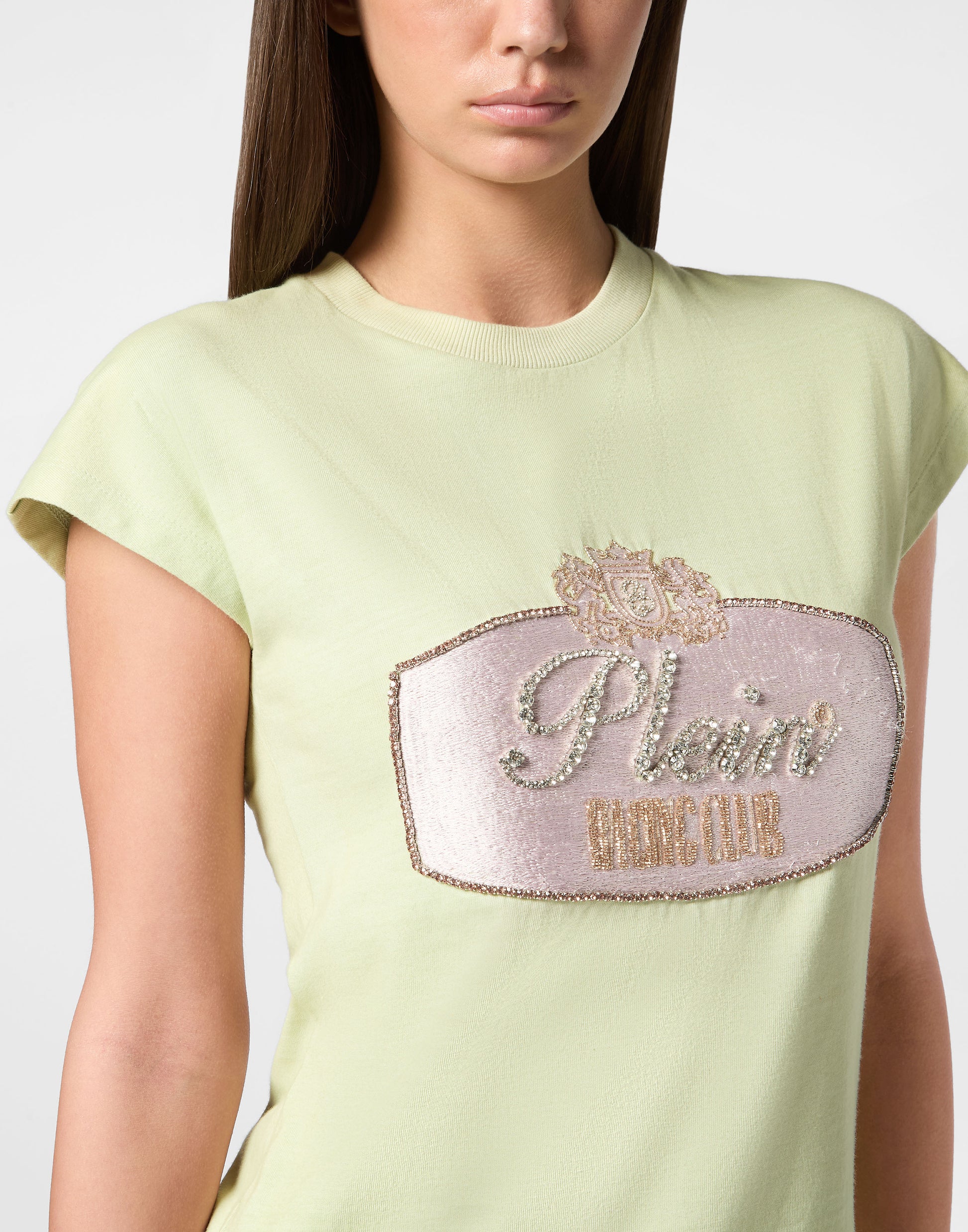 這款 Philipp Plein Racing Club 女款短袖T恤 採用柔軟的純棉材質,帶來舒適的穿著感受。淡雅的淺綠色基底搭配正面大型亮片與水鑽刺繡「Plein Racing Club」標誌,華麗又不失運動風格。背面上方點綴品牌六角標誌金屬徽章,低調展現品牌辨識度。